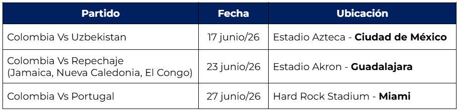 DÍA 2: (Miércoles 17 de junio de 2026) PARTIDO COLOMBIA VS UZBEKISTÁN