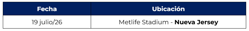 • Experiencia en el partido de la Gran Final del Mundial – 19 de julio de 2026 (C3 y C4).