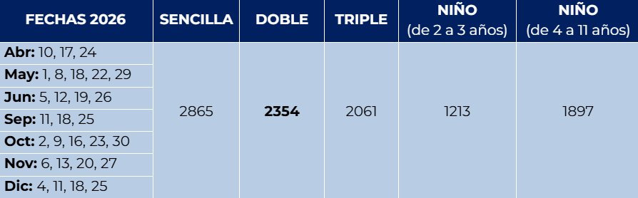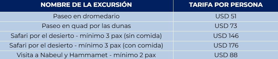 - Las excursiones que incluyen transporte marítimo están sujetas a condiciones meteorológicas.