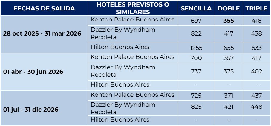 Desayuno. Por la mañana, salida para realizar una visita a la ciudad. Descubriremos la esencia de Buenos Aires en un recorrido guiado por sus principales atractivos. Nos sumergiremos en la diversidad y el encanto de esta metrópoli vibrante, explorando sus monumentos más emblemáticos.