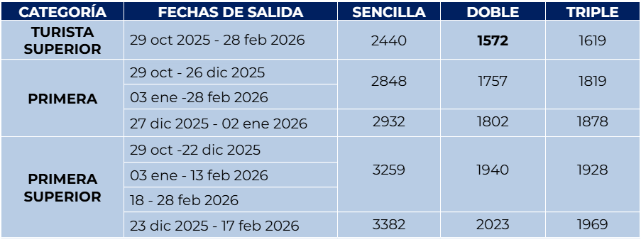 Al finalizar el tour, regresaremos al hotel para descansar después de una jornada inolvidable. Alojamiento.