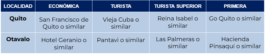 Quito se encuentra a 2.800 m s. n. m., por lo que recomendamos tomar este día con calma, relajarse y prepararse para la aventura que les espera. Alojamiento.