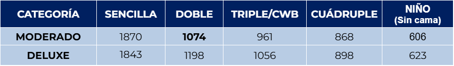 *Para todos los tours y atracciones, el pasajero debe llegar por su cuenta al lugar de inicio del tour o al lugar de atracción.