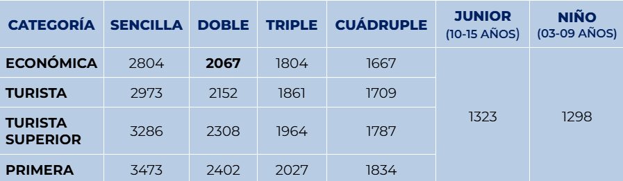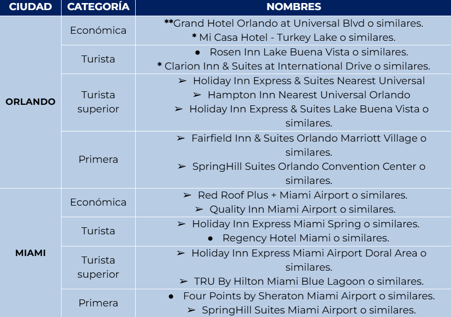 - Si el alojamiento seleccionado incluye desayuno, este se proporcionará diariamente durante la estancia.