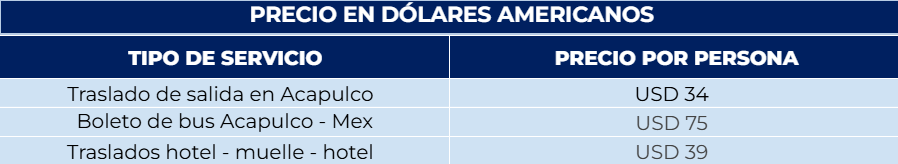 PRECIO POR PERSONA EN DÓLARES AMERICANOS