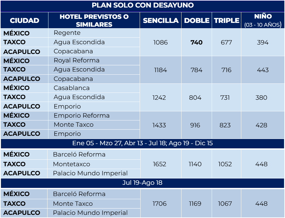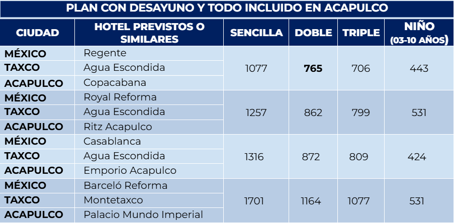 - Salidas a Taxco en lunes, miércoles, jueves, viernes y sábado.
