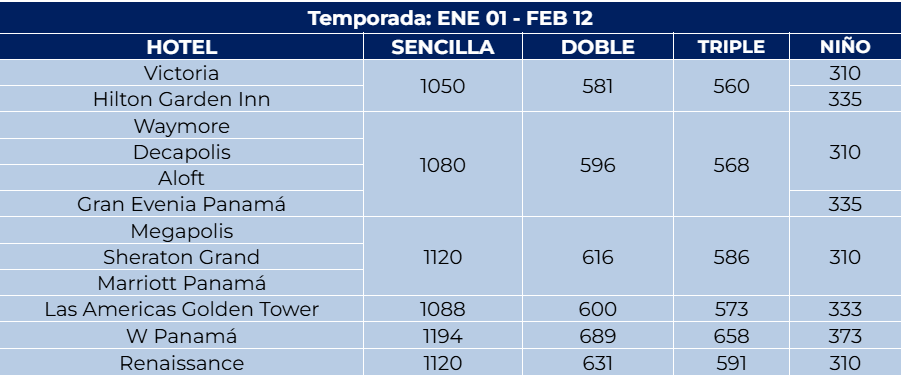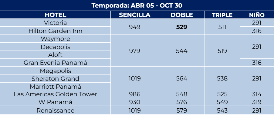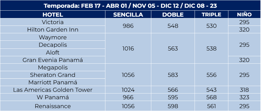 • Precios por persona, referenciales sujetos a disponibilidad y cambio.
