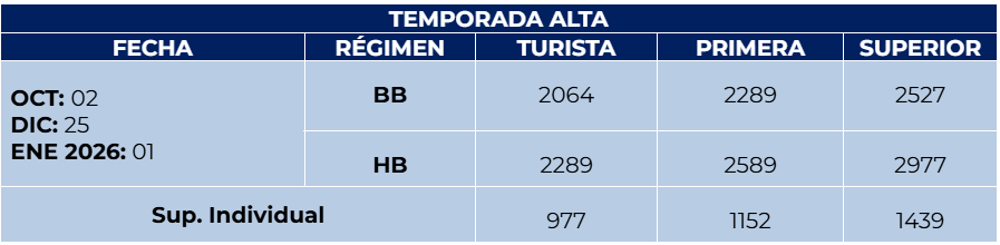 - El orden de las visitas puede sufrir alteraciones, dependiendo de las condiciones del día del tour o de los días festivos nacionales, sin perjuicio alguno para el programa de los pasajeros.