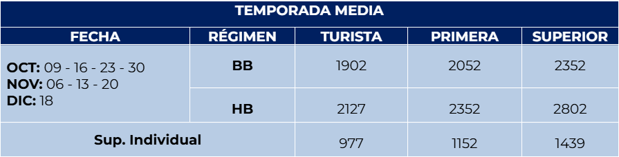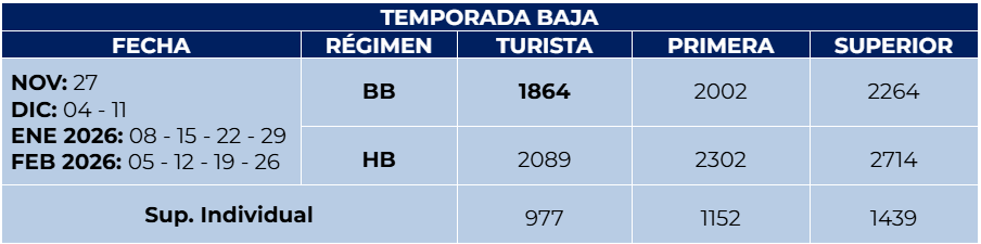 - La primera noche es siempre sin cena, aunque el tour reservado sea con media pensión.