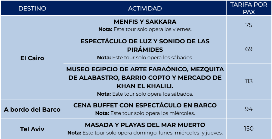 Tarde libre. Podrás realizar una excursión opcional a la Necrópolis de Sakkara y a Menfis, antigua capital del Imperio Antiguo. Por la noche, también de forma opcional, te invitamos a disfrutar del Espectáculo de Luz y Sonido en las Pirámides, una experiencia única bajo las estrellas. Alojamiento.
