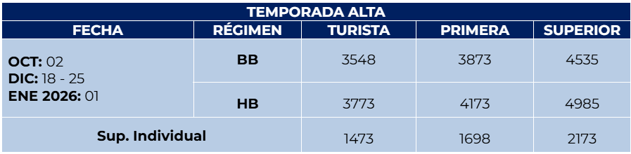 - El orden de las visitas puede sufrir alteraciones, dependiendo de las condiciones del día del tour o de los días festivos nacionales, sin perjuicio alguno para el programa de los pasajeros.