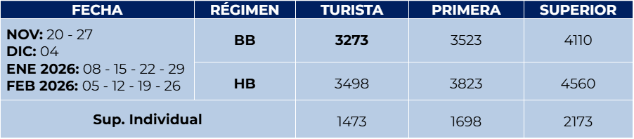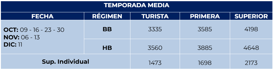 - La primera noche es siempre sin cena, aunque el tour reservado sea con media pensión.