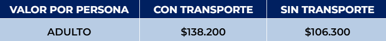 PRECIO POR PERSONA EN PESOS COLOMBIANOS (COP).