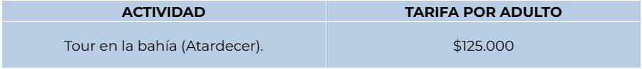 Desayuno. Recogida en el Muelle de la Bodeguita - Traslado marítimo hacia la isla, donde tendrás uso de instalaciones externas de descanso del hotel (Piscina del Daytour, sillas asoleadoras, camas asoleadoras) y en la tarde se tendrá un almuerzo servido estilo buffet (opciones de pollo, pescado y carne; dos variedades de arroz; diferentes tipos de ensaladas; una bebida no alcohólica, y un dulce típico).  Regreso al Hotel. Alojamiento.