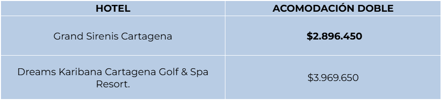 Alimentación Todo Incluido. Día libre para disfrutar de actividades personales que ofrece el hotel, como el spa, paseos en bicicleta, canchas de tenis o golf, dependiendo de las instalaciones del hotel elegido. También existe la posibilidad de realizar una visita opcional a los manglares, en la cual tendrás una experiencia única que te llevará a explorar los increíbles ecosistemas de manglares en Cartagena. Te recogeremos en tu hotel para llevarte a La Boquilla, un pintoresco pueblo de pescadores. Navega en canoa por túneles de manglares hasta la Ciénaga de la Virgen, rodeado de una fascinante biodiversidad, con aves como el martín pescador y pelícanos. Captura momentos únicos, disfruta de un show de pesca y saborea un almuerzo caribeño con pescado fresco. ¡Naturaleza y tradiciones en un solo tour!. Alojamiento.