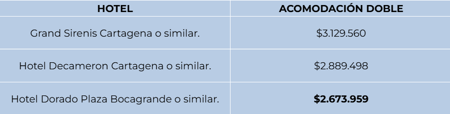 Llegada y asistencia en el Aeropuerto de Cartagena, traslado en servicio privado al hotel seleccionado. Resto del día libre. Alojamiento.