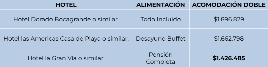 Desayuno. Salida hacia el aeropuerto de Cartagena para volver a su ciudad de origen.