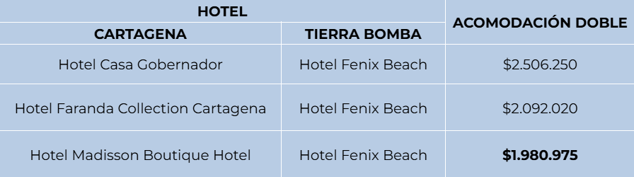 DÍA 3: CARTAGENA - TIERRA BOMBA - (HOTEL FENIX BEACH - DIA LIBRE)