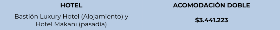 - Tarifa para niño a consultar con el asesor.