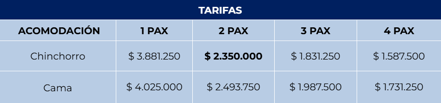 La jornada incluye desayuno en ranchería Wayuu, almuerzo y cena, traslados terrestres, entradas, recorridos guiados y el acompañamiento permanente durante toda la experiencia. El día culmina con alojamiento típico Wayuu, en chinchorros o habitaciones tradicionales, permitiendo una inmersión auténtica en la cultura local y cerrando una jornada inolvidable de conexión cultural, natural y espiritual en La Guajira.