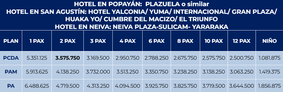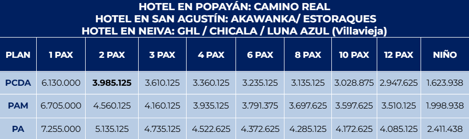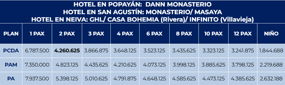 DÍA 6: NEIVA (TOURS OPCIONALES) - SALIDA
