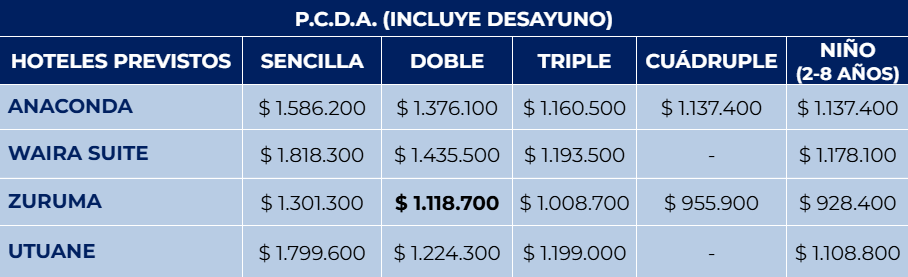 Continuando con las excursiones, podrá seleccionar una de las siguientes opciones, para vivir inolvidables experiencias.