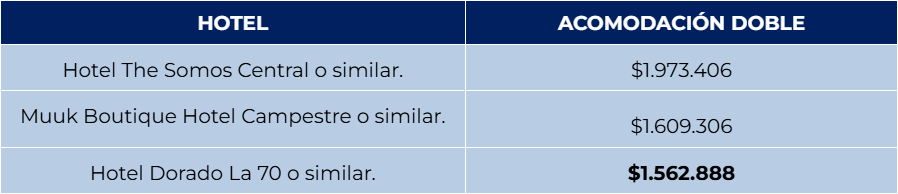 PRECIO POR PERSONA EN PESOS COLOMBIANOS (COP).
