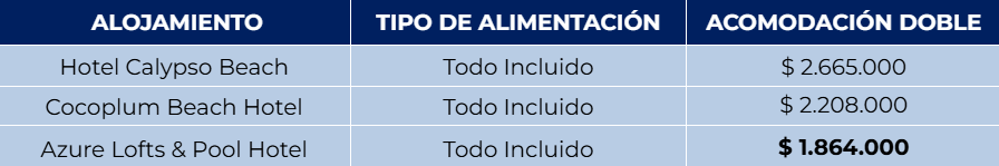 Posteriormente, podrás complementar tu experiencia incluyendo sin ningún costo el Tour Vuelta a la Isla terrestre y el Tour Bahía Diurno, actividades que podrán realizarse en días diferentes o combinarse en una misma jornada, una en la mañana y otra en la tarde, de acuerdo con la disponibilidad al momento de la reserva. Una excelente oportunidad para organizar tu itinerario y disfrutar San Andrés al máximo, combinando mar, paisaje, cultura y diversión. Regreso al hotel por cuenta del pasajero. Alojamiento.