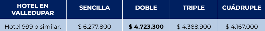 DÍA 1: (MIÉRCOLES 29 DE ABRIL) VALLEDUPAR - LLEGADA